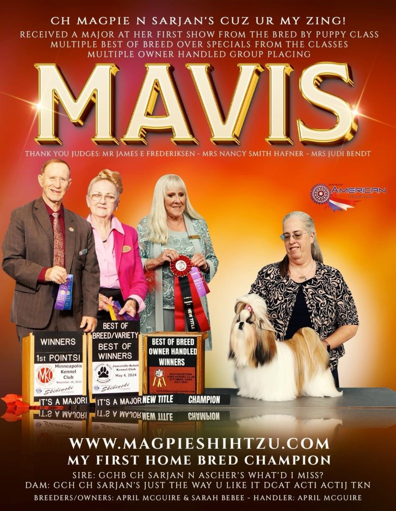 Mavis – CH OH Multiple Group Placing Magpie N SarJan’s Cuz UR My Zing! – Bred by April McGuire & Sarah Bebee. Lovingly owned by April McGuire